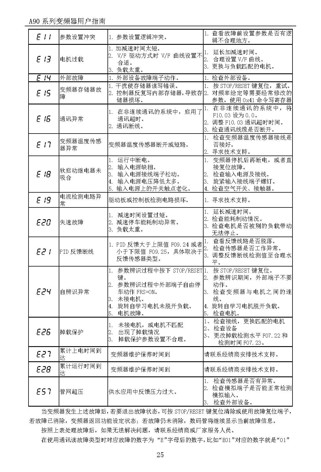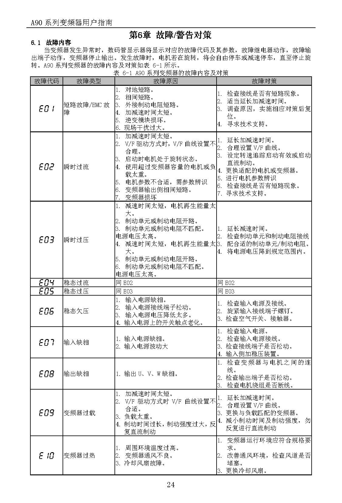 | 故障代码 | 故障类型 | 故障原因 | 故障对策 |