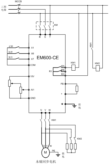 ◼ EM600-CE从11kW开始内置直流电抗器;