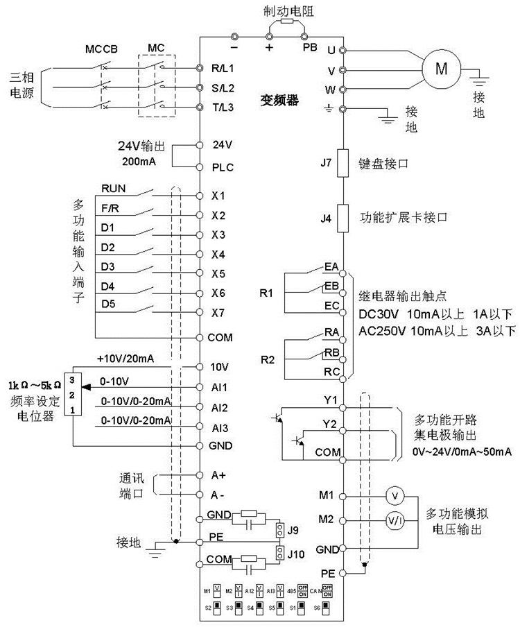 EM500系列开环矢量变频器:支持三相交流异步电机和永磁同步电机;支持多种国际领先驱动控制技术:改善的矢量VF控制技术(VVF)、无速度传感器矢量控制技术(SVC);支持速度和转矩两种输出形式;支持扩展:I/O扩展卡、通讯总线扩展卡。