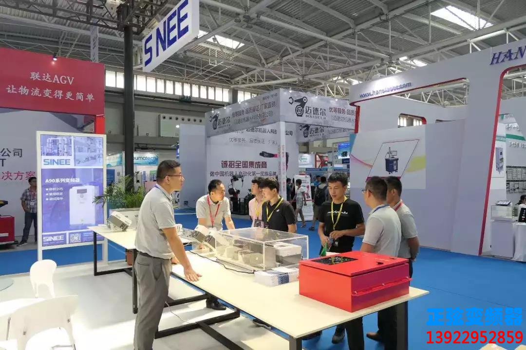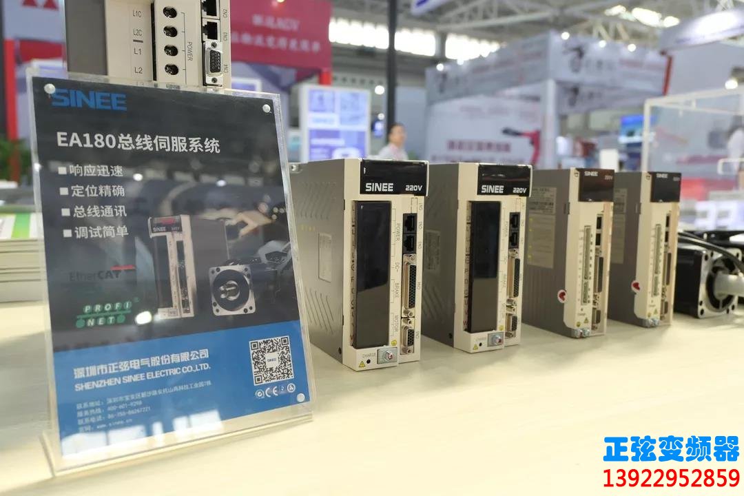 正弦电气现场展出高性能经典的变频器,精度高的伺服驱动器,同时推出了新款EA200A变频器,凭借变频器体积小巧,伺服精度高,适用行业范围广等特点征服了在场客户。